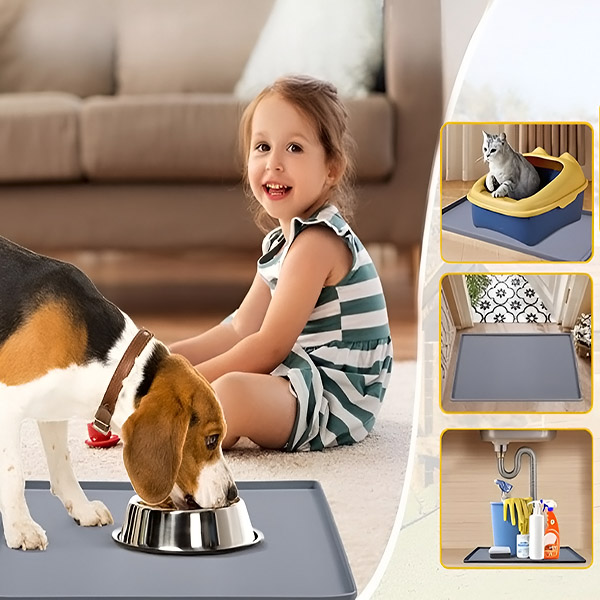 Napravljena od izdržljivog, netoksičnog silikona, ova podloga je 100% sigurna za vaše ljubimce. Njen vodootporni dizajn štiti vaše podove od prosipanja, ogrebotina i mrlja, nudeći bezbrižnost svakog obroka.