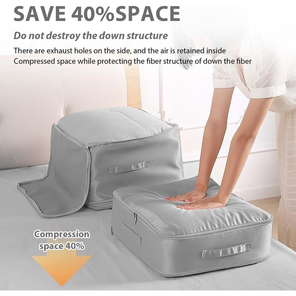 Jednostavno stisnite odeću, ćebad i više bez usisivača, oslobađajući puno dodatnog prostora u vašem koferu ili ormaru.