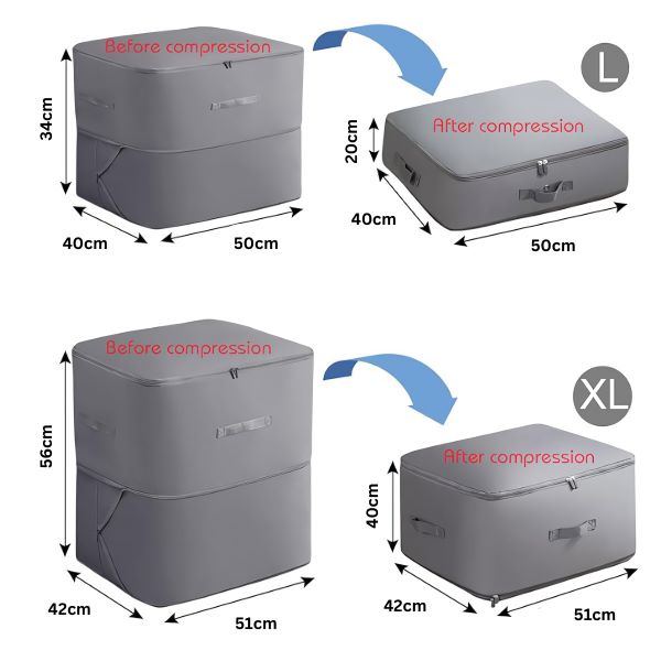 Idealno za jorgane, džempere i plahte. Održavajte svoj dom organizovanim i svoje predmete uredno zapakovanim za jednostavan pristup i transport.